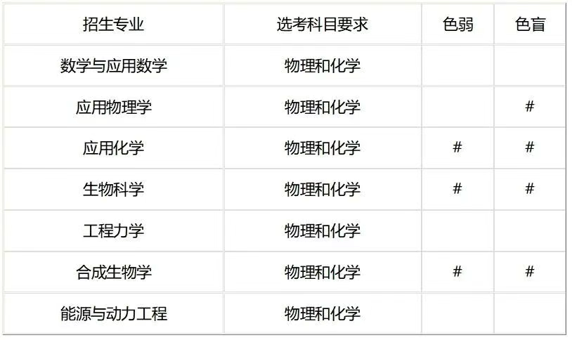 應(yīng)用化學(xué)專業(yè)、生物科學(xué)專業(yè)和合成生物學(xué)專業(yè)要求化學(xué)科目成績(jī)不低于97分(上海市要求70分),且高考加權(quán)成績(jī)排序處于6倍以內(nèi);